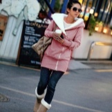 At this time, you can opt for fleece jackets. Most often they are made with the length covering the hips. They, as a rule, have a protracted belt ("snake"). There are also models trimmed with fur elements (hood, collar, cuffs).