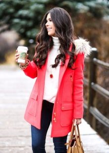 Denim is good because of its high wear resistance. Jeans look great in any length - to the waist, to the middle of the thigh or to the knee - choose to your taste, as well as based on the features of your figure. Jeans go well with fur, so pay attention to models with a fur collar, hood or cuffs. Knitted elements of contrasting colors are also appropriate in such jackets.