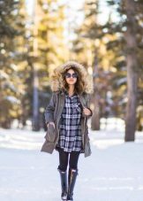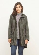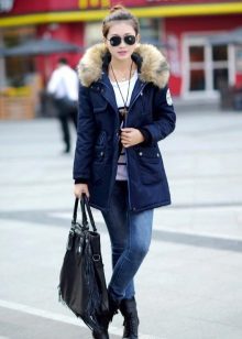 - Parka - an elongated loose jacket, reaching the middle of the thigh; It has a large hood (on some models it is trimmed with fur), patch pockets and many fasteners.