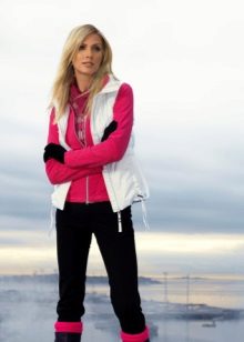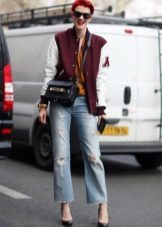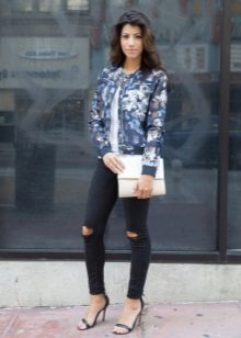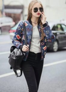 Sports jackets go well with trendy ripped jeans, shorts, leggings and loose trousers. Accessories should be chosen depending on the season: in winter it can be bright, comfortable hats, scarves and mittens, and in spring and autumn - large sunglasses, original neckerchiefs, gloves, small leather backpacks, etc.
