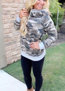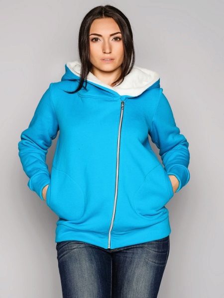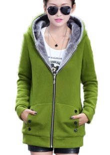 - Sweatshirt - a warm knitted jacket with a zipper or not, with a hood or a collar-collar; often decorated with large inscriptions or pictures;