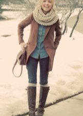 You can wear a military-style jacket with jeans or a floor skirt. Knitted accessories - hats, scarves, gloves, go well with her. To emphasize the military orientation of your style, you can sew chevrons or shoulder straps on the jacket, and instead of boots or ankle boots, you should take a closer look at the berets.