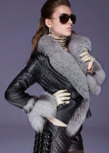 A leather jacket decorated with silver fox fur looks very impressive!
