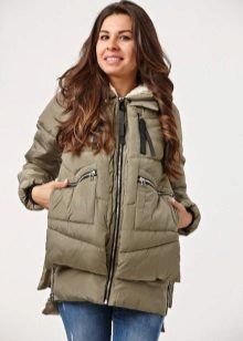 - Down jacket-bomber. Comfortable winter clothes, thanks to the bomber fluff, light and warm. Different lengths are possible in length: from the line of the thigh to the knee and below.