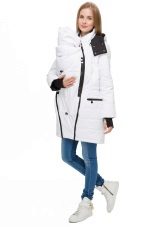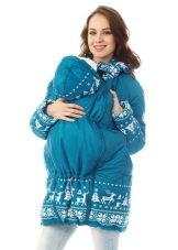 The main models of sling jackets differ from the usual ones in that in the front in the middle there is a special insert that makes the jacket wider. This insert is fastened to the slingokurt with two zippers. She is needed in order to wear the product during pregnancy or already directly with the baby in the sling. The design of the insert is such that, if necessary, you can stick the baby's head out, while the mother’s neck and chest will remain closed, as there is an additional detachable zipper between the neck of the mother and the neck of the baby. On the insert there is often a convenient detachable hood equipped with a drawstring for the baby.