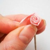 - Taking a special tool with a metal rod and a slot, you need to twist the cut spiral-shaped strip into a bud. The edges are better fastened with glue.