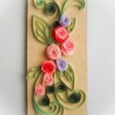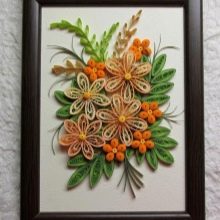 - Glue the parts of the flowers to a solid and reliable base. Additionally, the composition should be decorated with leaflets, also made using the quilling technique. Various decorative elements, for example, beads, will also be useful.