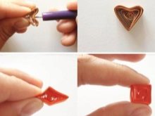 Just as easy to make a small heart. Right-handed people are advised to hold the material with their left hand, and the instrument with their right. When using a double strip of paper, it is imperative that its back is facing toward the core. Rotate the tool clockwise. Another simple element is a free spiral. The principle of creation is the same, only before you fix the end, you need to remove the roll from the rod and let it spin a little.
