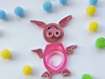 You can advise beginners to make an attractive pig. This is a small, volumetric toy. For manufacturing, you need 36 strips of pink corrugated cardboard with dimensions of 3681 mm and three strips of 3080.5 mm. You also need to prepare strips of red cardboard in the amount of 1 piece 481 mm and the same 3081 mm.