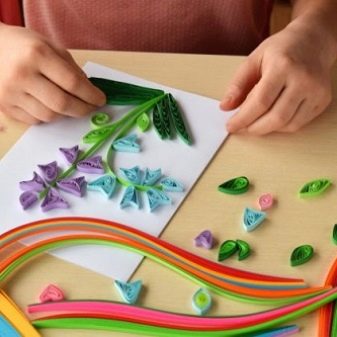 Now that you don’t have to use feathers, other things apply like toothpicks, needles and specially designed crevice tools. Paper strips no longer cut by hand, a chopper was created for this. The created circles are great for creating not only colors, but also other elements. Professionals easily create paper masterpieces, forming floral paintings and landscapes with animals. Often you can see three-dimensional figures.