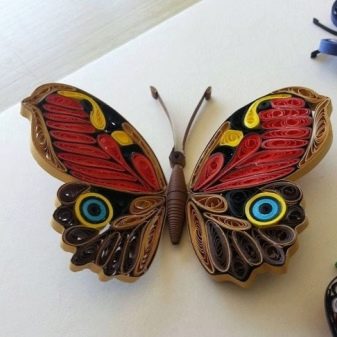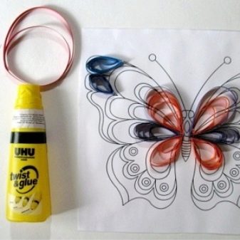In the process of painstaking work, you can create a butterfly or tree. In the future, their shape and size can be changed depending on the imagination of the author. Butterfly, although simple, but quite an interesting craft. Strips of paper can be any color. Phased process is as follows.