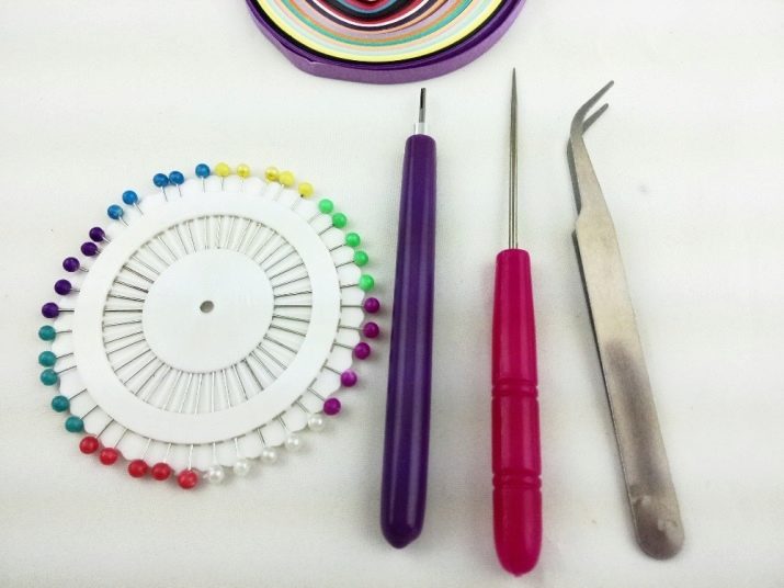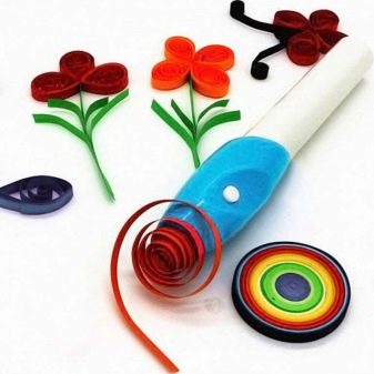In quilling technique, the main thing is a tool with a sharp end. This unit is needed to bend the ends of the paper strips to form spirals. Such products are offered on the market in the form of an awl or quilling machine. The first one is cheaper, and besides, they can learn needlework very quickly.