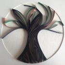 - To create a tree outline, a stencil is drawn and cut. It will be a tree inscribed in a circle. First a circle is drawn, then a symmetrical tree, it is also cut along the contour. It is applied to the base of the substrate (cardboard, thick paper or foamiran).