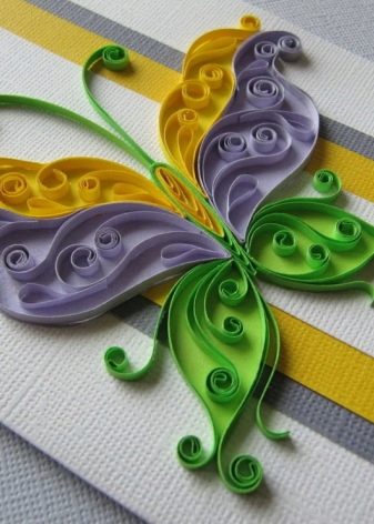 They will be symmetrically located on the canvas, because it is enough to describe only one butterfly, the second is done in the same way. The work uses a standard set for quilling.