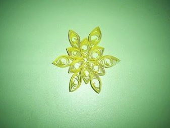 After that, you can proceed directly to the formation of snowflakes. The round billet, carefully squeezing and unclenching, give the necessary slightly elongated shape - it is best to take the “eye” technique as the basis. After all the elements are ready, you should carefully fix them together, forming a snowflake.