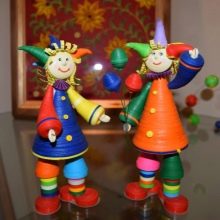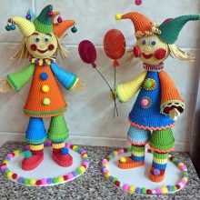 - In this technique, funny buffoons are obtained. It can be provocative little men in bright and colorful outfits, red boots, standing on hands. The character can be decorated with a tall triangular hat with a snow-white pompom. Looks good composition, in which there are several buffoons.