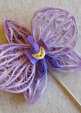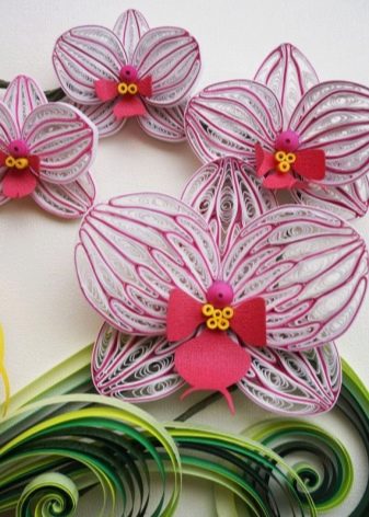 - In the technique of volumetric quilling, you can make very elegant and bright flowers. For example, it can be beautiful orchids with large petals of delicate colors. Such decor will become a chic decoration of the interior and certainly will not be left without attention. For flowers, you can choose a beautiful vase or make it yourself using the quilling technique.