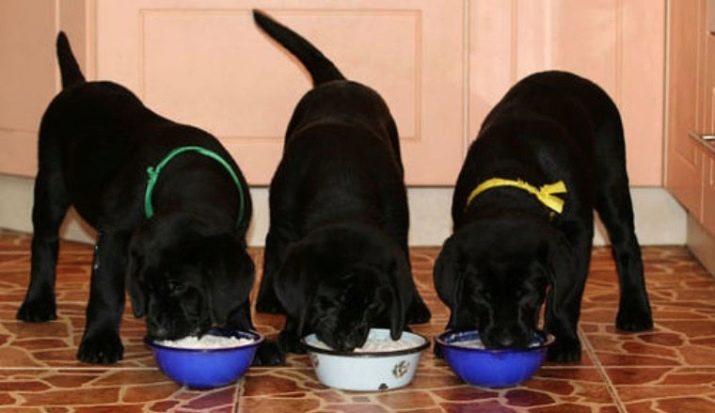 Early in the morning, you can give the baby cottage cheese with sour cream, oatmeal, flavored with a small amount of honey. At 10 o’clock in the morning the dog should firmly eat porridge with vegetables and meat slices. At lunchtime, the animal is given milk, cottage cheese or any sour-milk drink. Boiled eggs are fed once a week. At 10 o’clock in the evening they offer the pet meat or fish (only raw). In total, a 2-month-old Labrador puppy is fed 5 times a day.