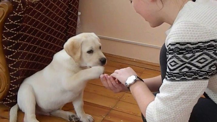 If, while playing, the little labrador bites and does not listen to the command "Fu" and "Not", you can moderately strong press it to the floor at the withers.