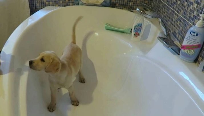- After walking accustom to washing paws. When the puppy grows up, he may well jump into the bath and expose his paws under the stream of included water.