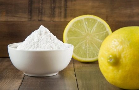 - Mix baking soda, citric acid and pine essential oil in one piece. The resulting mixture is applied to the stain and hold for about 5-10 minutes. After that, we wash the product, it is advisable to use an oxygen-containing powder.
