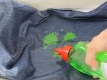 - In an extreme case, you can try to influence the stain with a dishwashing gel gel. It is applied to the contaminated area, previously foaming, and left on the fabric so that it is well saturated.