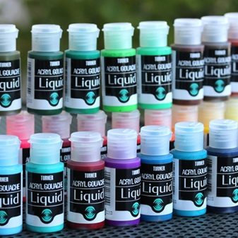 - acrylic gouache. Modern developments have allowed to add acrylic to gouache. It makes it possible to cover it with any base and is not washed off after the paint dries.