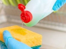 - so that the stain is removed from any surface of the fabric quickly, pull the contaminated area, placing any solid thing under it. A soft-type toothbrush, cotton pads and a simple sponge for washing dishes will help in the fight against pollution;