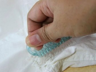 - Strong mechanical effects on the stains in the process of cleaning fabrics are unacceptable. Increased friction and compression can disrupt the structure of the fibers of matter, as well as provoke the destruction of coloring pigments in the deep layers of the fabric, which will lead to loss of color in this area.