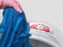 In order to process the garment, you must first soak it in warm water with diluted bleach for about an hour, and then wash in the usual way.You can try to immediately add bleach to the washing machine, but in this case it is recommended to pour it directly into the drum, and not into the compartment for washing powder, to avoid unnecessary accumulation of the product.