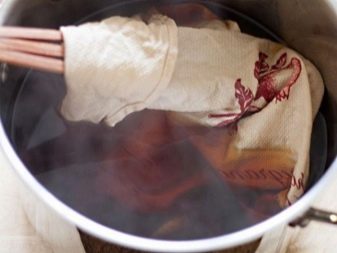 Can be cleaned by ordinary boiling. The product is soaked in a special solution that contains soda and washing powder, after 1 hour we pour in there (the thing is bleach for colored things, then boil for half an hour.