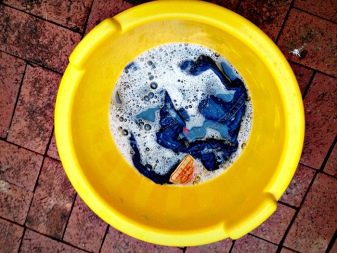 It is better to wash the jeans by hand, rather than using machine wash. For hand washing, ordinary household soap is suitable, a small amount of which needs to be grated and completely dissolved in warm water. Do not use washing powder, as it negatively affects the fabric, discoloring it. Also, when in contact with washing powder, buttons may fade.
