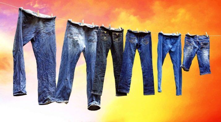 - It is better to dry jeans in the fresh air. It is strictly forbidden to hang clothes in direct sunlight.