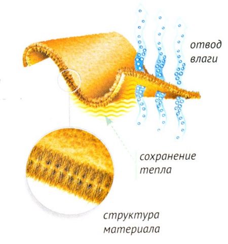 - Actively removes moisture from the body. That is why thermal underwear is called the second skin, because it allows the body to breathe. In cold weather, moisture, lingering near the body, leads to additional heat loss, and, as a result, to the cooling of the body. If sweat through the pores of the tissue leaves the skin surface well, the body does not lose heat. This process allows you to stay in the cold for a longer time, without experiencing unpleasant chills and without hypothermia.