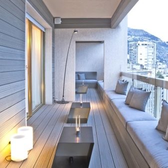 - Panoramic balcony will require a special approach. This design in the apartment can be made like a French one. From such a balcony it will be possible to admire city landscapes from above. There should be a minimum of decoration, but the presence of blinds and comfortable furniture is required.