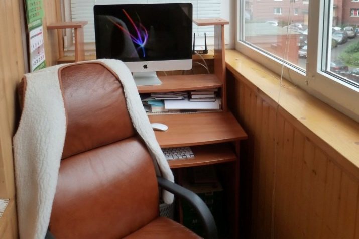 - Balcony with underfloor heating is perfect for cabinet. This is a separate space with special functional furniture, where you can easily install a computer, after placing the table with a chair. A wall cupboard and shelves will help to use the space productively, having everything you need at your fingertips. Such a balcony will require perfect thermal insulation as well as waterproofing.