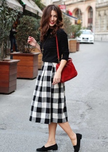 A classic pencil skirt or a-line skirt will look especially good. It is better to refuse too magnificent romantic skirts.