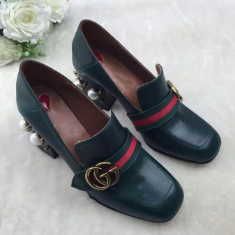 Some of the most spectacular heeled loafers can be found at Gucci.