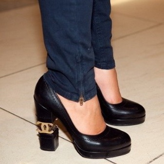 - Thick-heeled models in combination with breeches or shorts will look unusual. Wear them over tight tights, you can additionally wear leggings if you are not afraid of increased attention to your legs.