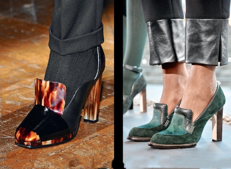 - High-heeled loafers can easily fit into an office dress code. They can be combined with strict business suits, shirts and blouses. You can experiment with deliberately masculine images, or you can give preference to a more feminine, romantic look. By the way, models with heels look great with cropped trousers.