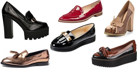 Over time, designers began to experiment and make female models more elegant and sophisticated. So there appeared loafers on wedges and heels. Today there is a wide small heel, a breathtakingly high thick heel and even a thin stiletto.