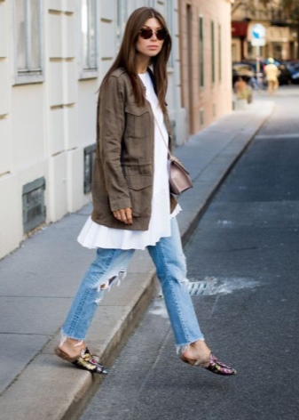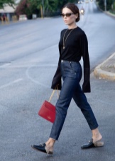 Loafers combined with skinny jeans and a spacious top will create an optimal outfit for walking.