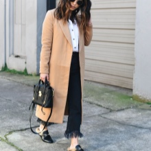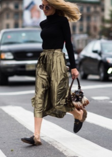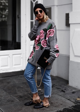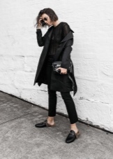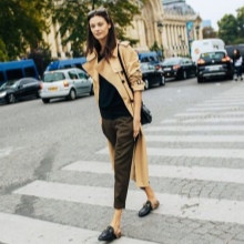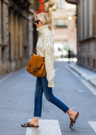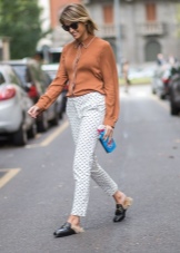 Cropped trousers are considered ideal for loafers. The top in this case should be solid. It can be a jumper, a fitted shirt or a blouse. Interesting in this outfit look elongated knitted sweaters.