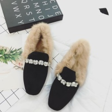 The exterior finish of the loafers is more an element of decor than a source of heat preservation. For this purpose, they mainly use shorthair nap. Shoes with fur outside are not suitable for frosty weather.