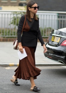 Platform loafers and a leather dress will give a very original and attractive look. A fitted jacket will help to complete the look.