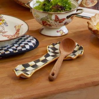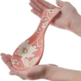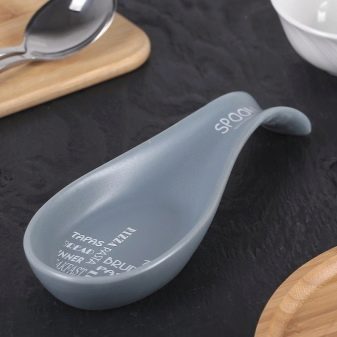 Ceramic support spoon is usually coated with glaze. Choosing this option, it is worth remembering that with improper use, the surface of the product may become covered with small cracks. Do not wash such a stand in too hot water, otherwise the icing will crack.