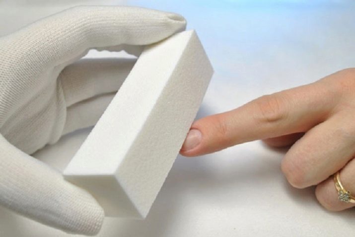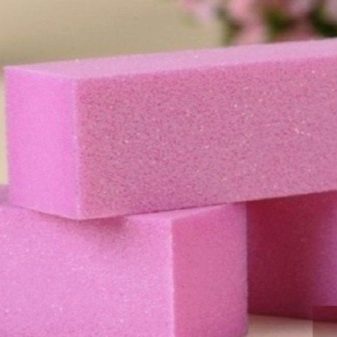 - Polyethylene foam. The most popular option, equally successfully used by both specialists in salons and non-professionals at home. First of all, this is explained by the resistance to wear and the affordable cost of tools made from this material. Another obvious advantage of polyethylene foam buffs is ease of care and the possibility of regular disinfection, which does not damage the tool.