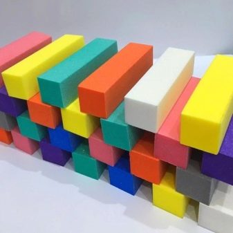 The first feature that distinguishes a buff from a regular file is its shape. Most often, it looks like an elongated block (parallelepiped) with a large area of working surfaces. The materials from which such devices are made are also noteworthy: due to their properties, they gently act on the nail plates, and therefore are successfully used to solve the most delicate tasks.