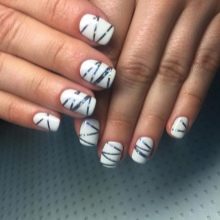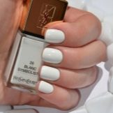 - To create such a concise, but stylish nail design, you need to use only high-quality branded varnishes. This condition is important to observe, because in most cases, white varnish falls heavily on the nails. In addition, a good and expensive snow-white varnish will not resemble a putty with an uneven surface.