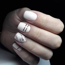 White manicure can be not only monophonic. It is acceptable to supplement it with other coatings. Fortunately, the classic white color blends seamlessly with most other scales. The result is very interesting and fashionable combinations that attract a lot of attention. The most successful are the following tandems of colors: